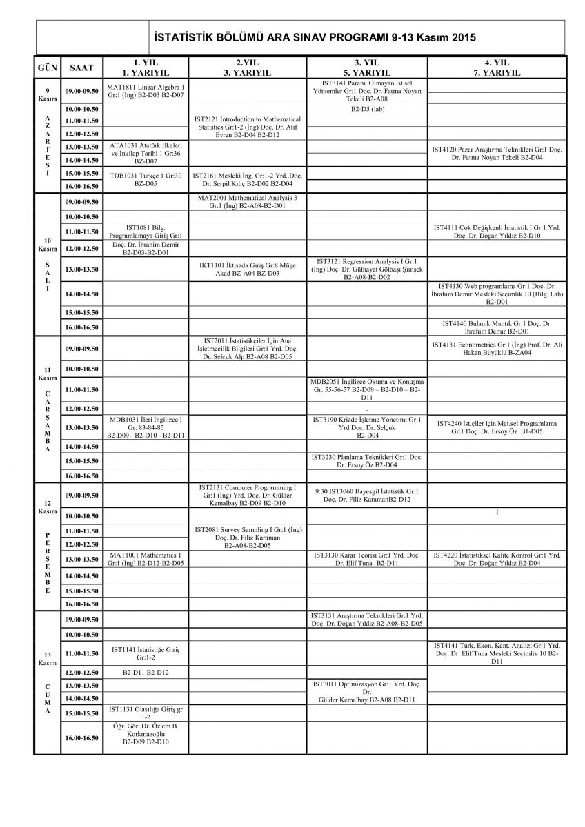 IST2121 Introduction to Mathematical Statistics,IST2161 Mesleki İng, IST1141 İstatistiğe Giriş ve IST1131 Olasılığa Giriş derslerinin grup vizeleri birleştirilmiştir.