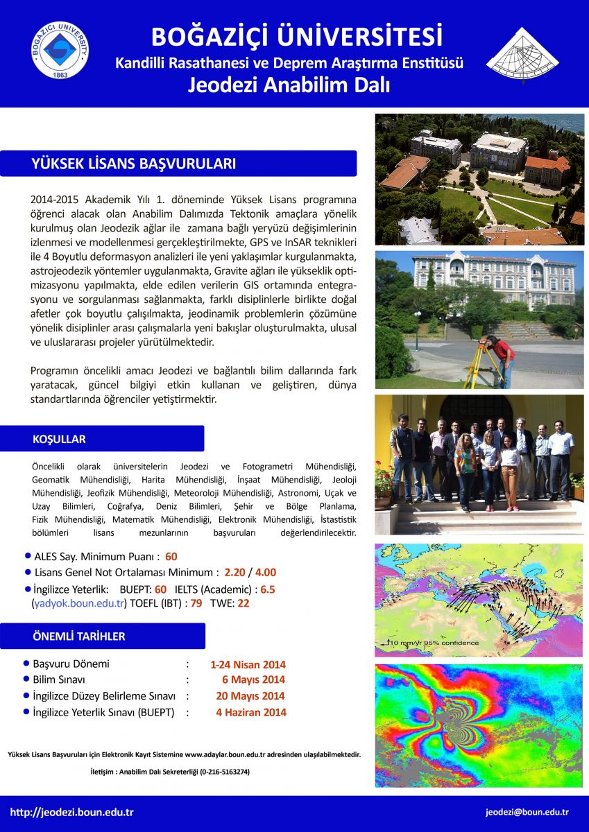 Boğazici Üniversitesi Jeodezi Anabilim Dalı Yüksek Lisans Basvuru Duyurusu