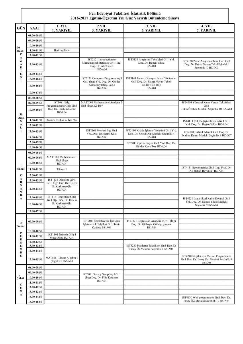 2025-2026 İstatistik Lisansüstü 1. Vize Programı
