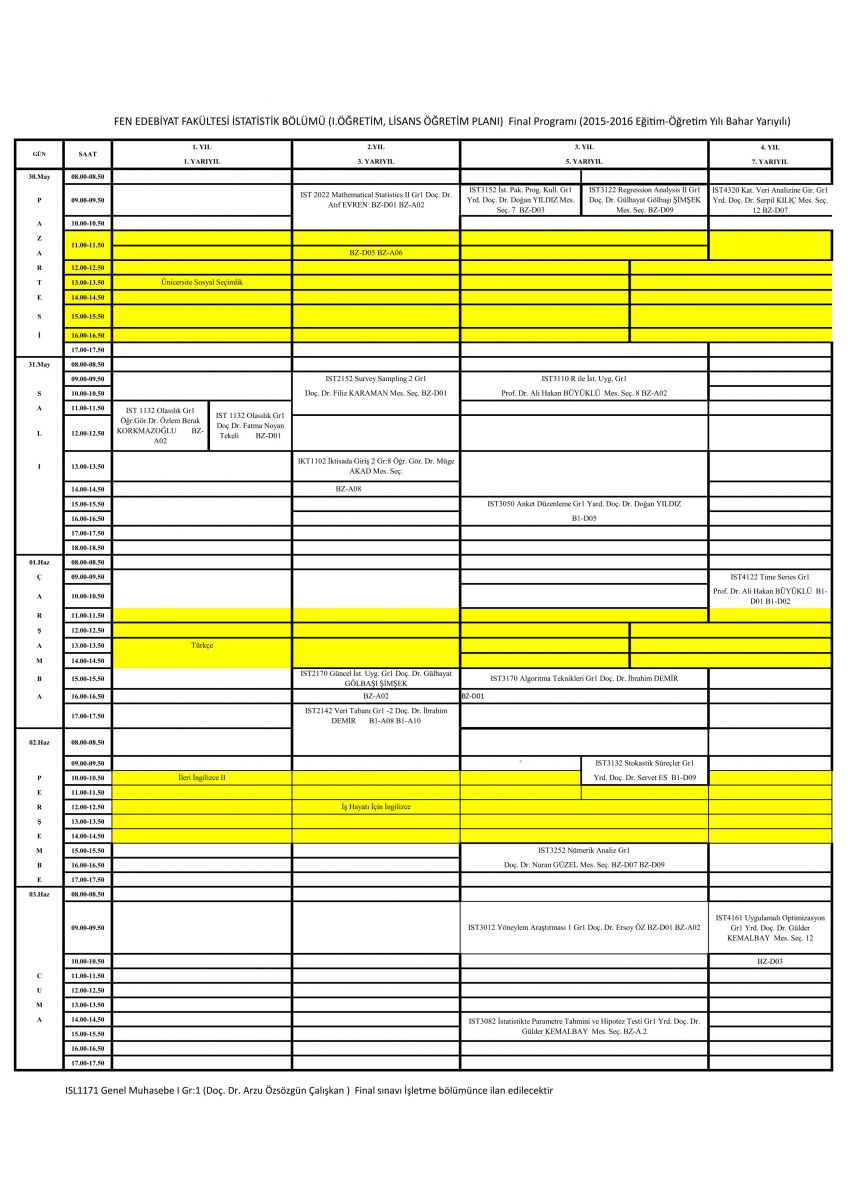 Deneysel Tasarım Final Sınavı başlama saati 7 Haziran Salı günü Saat 16:00 olarak değiştirilmiştir.