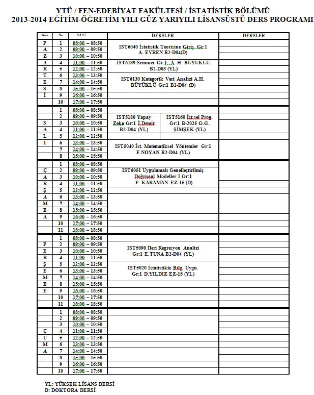 Lisansüstü Ders Programı