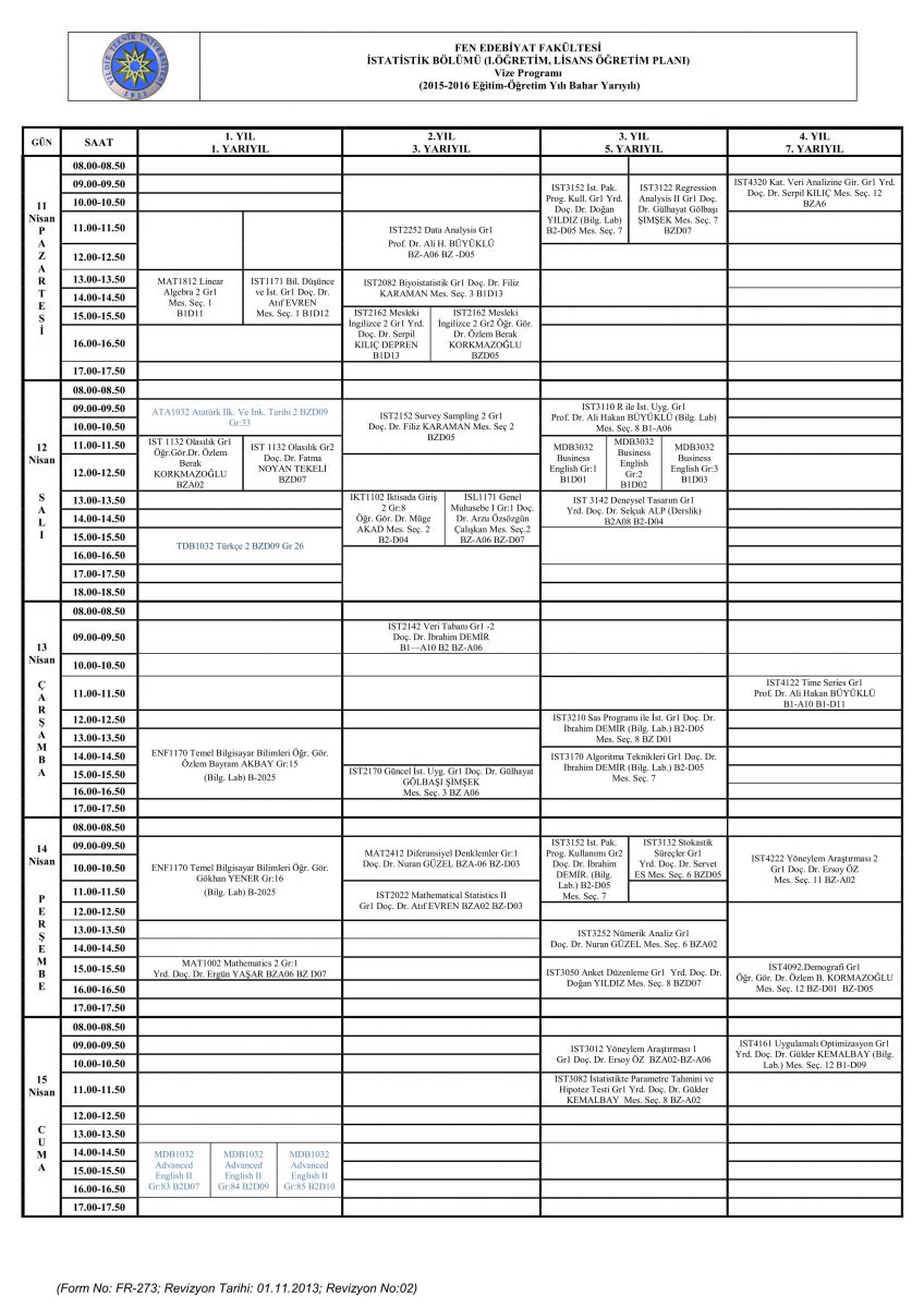 2025-2026 İstatistik Lisansüstü 1. Vize Programı
