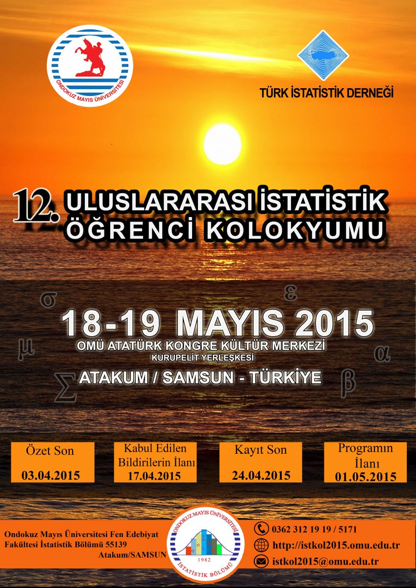 18-19 Mayıs 2015 tarihinde Ondokuz Mayıs Üniversitesi Fen Edebiyat Fakültesi İstatistik Bölümü tarafından 12. Uluslararası İstatistik Öğrenci Kolokyumu,mavi ile yeşilin buluştuğu Karadeniz Bölgesi’nin en büyük kenti Samsun’da düzenlenecektir. Sizi kolokyuma davet etmekten mutluluk ve onur duymaktayım.