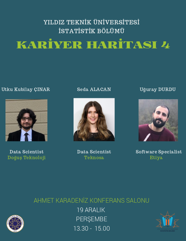 Bu yıl Bölümümüz tarafından 4.'sü düzenlenen “Kariyer Haritası” adlı etkinlik 19 Aralık 2019 Perşembe günü saat 13.30-15.00 arasında gerçekleştirilecektir.