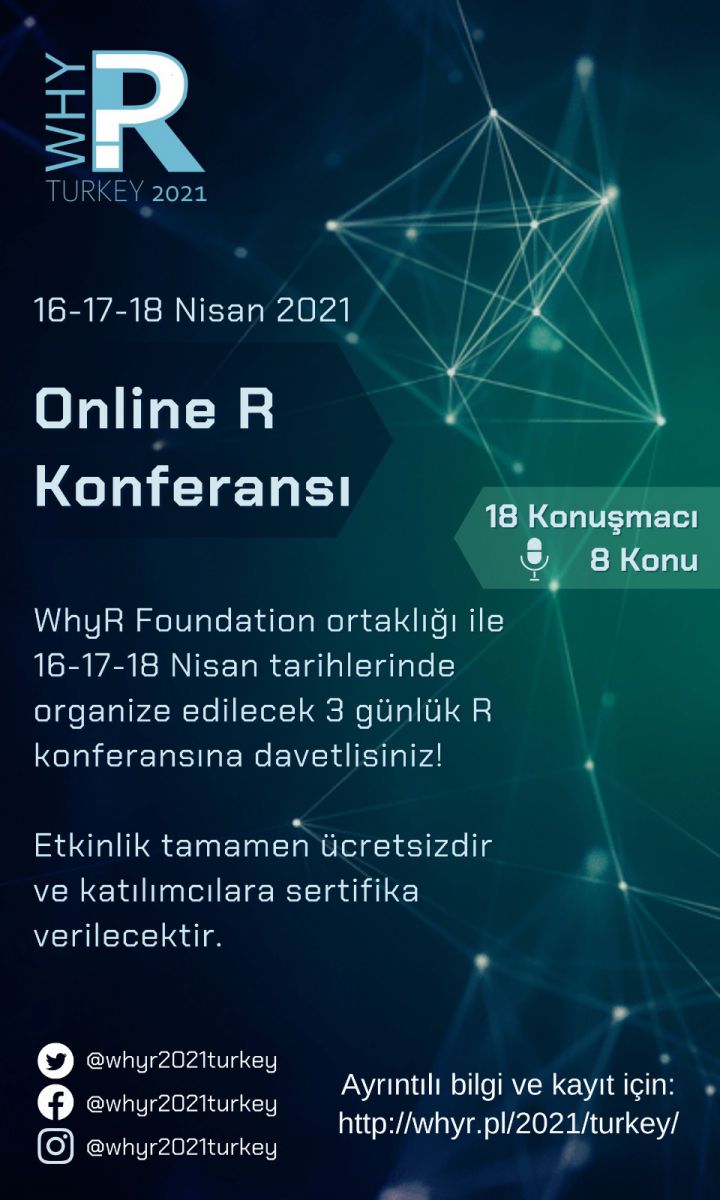 16-17-18 Nisan 2021 tarihlerinde online olarak Eskişehir Teknik Üniversitesi İstatistik Bölümü tarafından düzenlenecek R konferansına, bölüm hocalarımız ve öğrencilerimiz davetlidir.